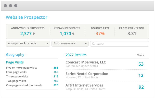 Act-On’s Website Prospector allows sales to reach out warmly and effectively, with insight into their interests and pain points based on web pages they’ve visited, content they’ve downloaded, search terms they’ve used, and much more.