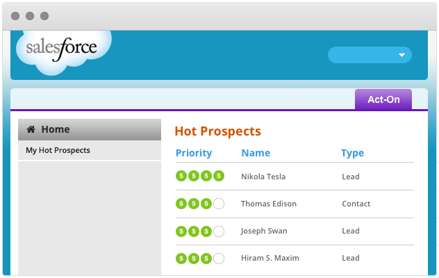 Act-on simplifies the hand-off of hot prospects identified through lead scoring to your sales team.